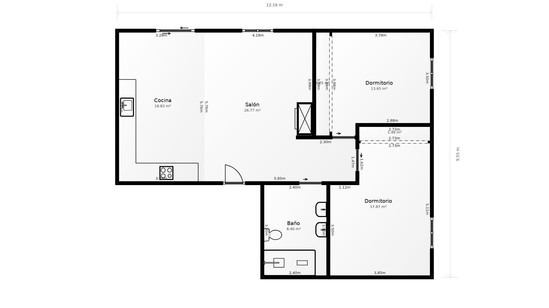 Distancias: Playa: 1km Hospital: 2,4km Centro comercial: 3,9km.