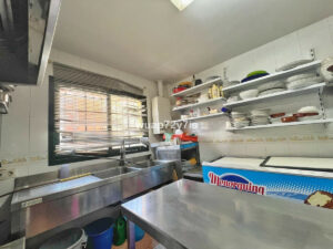En la planta baja se encuentra la recepción, una cocina profesional totalmente equipada y una sala común con acceso a una terraza exterior. Aunque actualmente no está amueblada, la terraza ofrece un amplio espacio para instalar zonas de desayuno o comedor al aire libre — un valor añadido muy atractivo para los clientes.