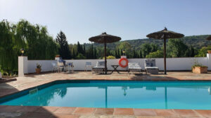 La propiedad se organiza en torno a un impresionante patio andaluz, que conecta el edificio principal con un anexo de invitados. Cada una de las 7 amplias habitaciones con baño en suite está diseñada para el máximo confort; las suites premium cuentan con bañeras de hidromasaje privadas y balcones con vistas panorámicas de 360° a la Serranía de Ronda.