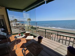 Descubre la oportunidad de vivir en un espectacular piso de primera planta que ofrece impresionantes vistas frontales al mar. Esta propiedad cuenta con dos amplios dormitorios y dos baños, perfectos para familias o como refugio vacacional. Disfruta del aire fresco del océano mientras te relajas en el balcón cerrado con Lumon, diseñado para ofrecerte un espacio versátil donde disfrutar del paisaje durante todo el año. La decoración moderna y elegante complementa a la perfección este acogedor ambiente, creando una atmósfera sofisticada ideal tanto para residir permanentemente como para escapadas ocasionales.
