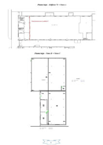 Número de plantas de los 2 edificios – 4: Edificio 71: Baja, 1ª, 2ª y 3ª / Edificio 73: SS, Baja, 1ª, 2ª. Nave A: 858,00 m2 Nave B: 336,60 m2 Nave C: 259,95 m2