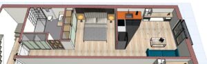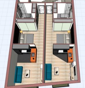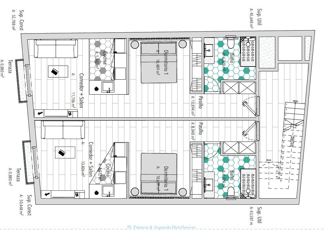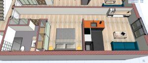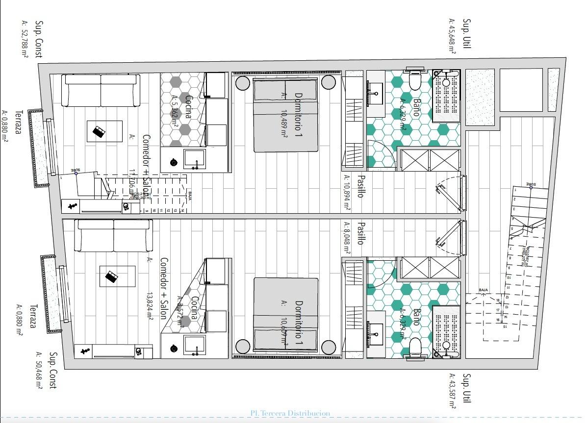 Las viviendas tienen entre 56 m² y 62 m² construidos (35 m² y 44 m² útiles), una de ellas con altillo y dormitorios adicionales. El local comercial ofrece gran potencial para ser convertido en una vivienda de 2 dormitorios o en zona común en caso de un modelo coliving.