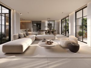La planta semisótano/baja está inteligentemente dividida en dos áreas funcionales. La primera, correspondiente al sótano—definido por su posición a más de 1,5 m por debajo del terreno original— y la segunda área, considerada planta baja por su exposición sobre el terreno en dos lados, ofrece una distribución amplia y confortable. Incluye despensa, dormitorio con baño en suite, otro dormitorio con baño en suite y vestidor, distribuidor, zona de recepción, cocina, amplio salón-comedor, aseo de cortesía y un porche cubierto que se extiende desde el salón. El resto de este nivel comprende una terraza abierta, jardín paisajístico y piscina con zona de tumbonas, creando un entorno perfecto para la vida al aire libre y la relajación.