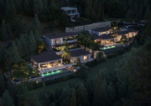 Oportunidad extraordinaria de adquirir una parcela premium con proyecto aprobado y licencia de obra para la construcción de una elegante villa contemporánea con una superficie total construida de 671 m², distribuidos en tres niveles: dos plantas sobre rasante más una estructura de acceso a la azotea. Conforme a la normativa urbanística, la parcela permite una única vivienda unifamiliar aislada en una superficie mínima de 1.000 m², con una altura máxima de PB+1 y 7 metros, una edificabilidad neta del 0,25% (385,46 m² sobre rasante) y una ocupación permitida en planta baja del 25% (385,46 m²). Se cumplen los retranqueos obligatorios de 3 metros tanto a linderos públicos como privados, y el uso predominante es residencial. El requisito mínimo de dos plazas de aparcamiento se supera con una generosa zona de estacionamiento cubierta por pérgola para tres vehículos.
