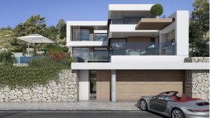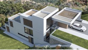 Cada villa se adapta individualmente a la topografía natural de la ladera, creando una urbanización cerrada que transmite exclusividad, no masificación.