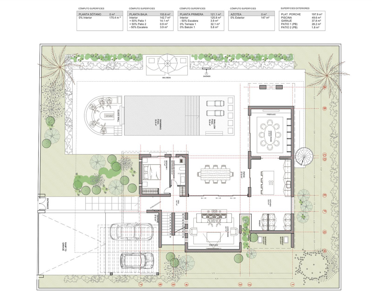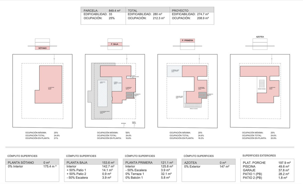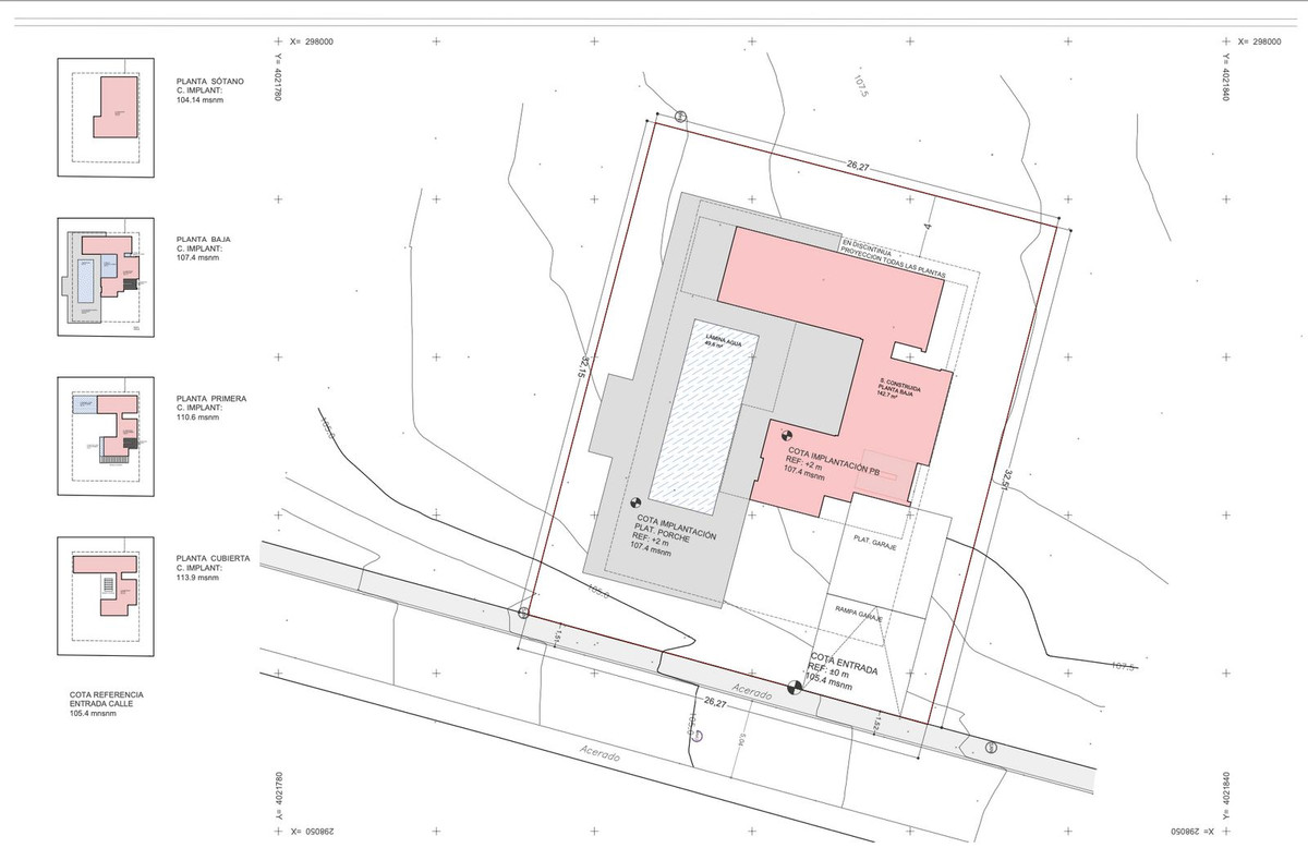 La edificabilidad del terreno es de un generoso 33%, por lo que además de los 280 metros cuadrados que se pueden construir sobre rasante, también hay un enorme sótano, que, debido a la inclinación del terreno, se puede construir con importantes recursos naturales. luz.