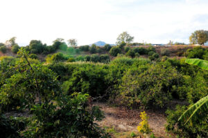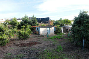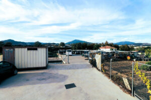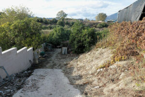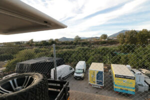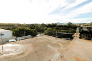 La entrada a las naves tiene una explanada de 500 m2 asfaltada y un magnifico mirador con vistas a la montaña y al resto del terreno de la parcela compuesto por arboles frutales y una casita de apero.