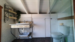 Adicionalmente, la propiedad incluye dos apartamentos independientes. Uno de ellos consta de dos habitaciones y un baño, mientras que el otro cuenta con tres habitaciones y dos baños.