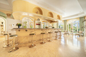 En la planta superior, encontrará cuatro lujosos dormitorios, cada uno con su propio baño. Desde aquí, también se accede directamente a la casa de invitados contigua, que incluye siete dormitorios adicionales, varios baños y un total de tres cocinas totalmente equipadas.