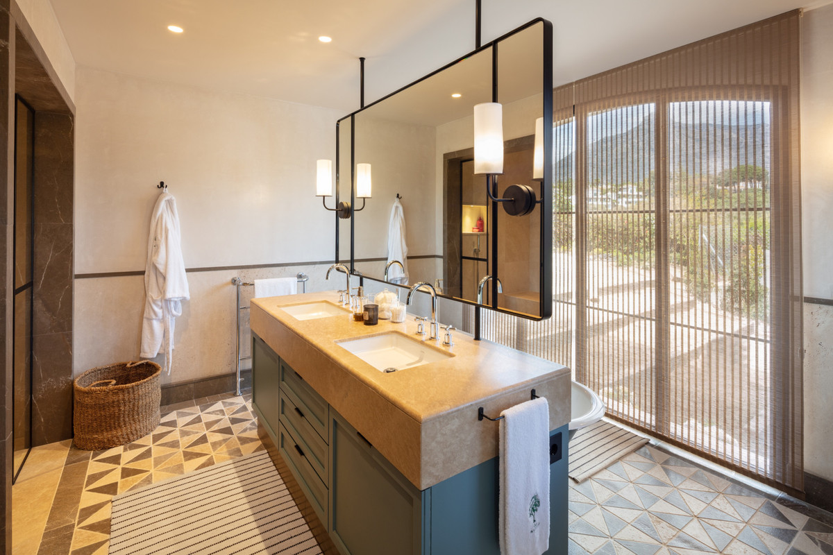 Con un impresionante total de 9 dormitorios de gran tamaño, repartidos uniformemente por toda la finca principal, cada uno de ellos ha sido cuidadosamente diseñado, aprovechando al máximo su capacidad. La suite principal es realmente asombrosa, diseñada con toques de madera natural en toda la casa, armarios personalizados y elementos de diseño únicos, con vistas a las magníficas vistas al mar y fluyendo armoniosamente hacia la terraza privada. Con un amplio y elegante baño principal integrado, cuya pieza central es una hermosa bañera de pies de garra de cobre verde con un techo de cristal abierto, con abundantes vistas a la naturaleza y acceso directo a un jacuzzi exterior.