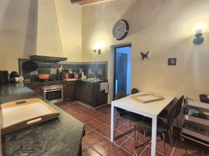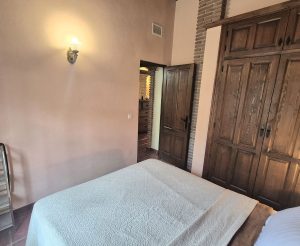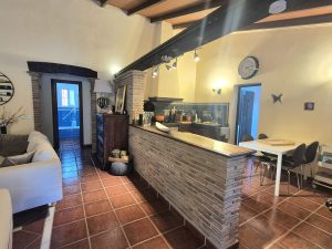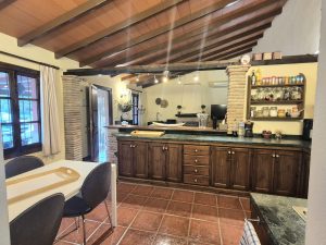 Al entrar en la casa a través de este porche (imagina sentarte aquí para desayunar, cenar o con una copa de vino), tienes una sala de estar / comedor de buen tamaño con una cocina semiabierta totalmente equipada con placa de gas y un cuarto de servicio separado; el salón tiene una chimenea en funcionamiento y aire acondicionado frío y calor. Desde aquí tienes un pequeño pasillo que conduce a los 2 dormitorios con un baño completo compartido. Los dormitorios comparten aire acondicionado centralizado, lo que es muy cómodo en verano e invierno. La casa es muy acogedora y está lista para mudarse.