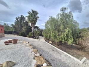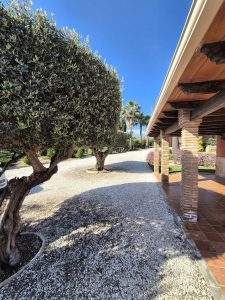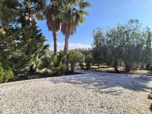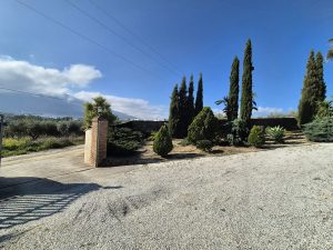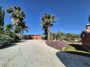 La finca se encuentra a solo unos minutos fuera de Alhaurín el Grande, entrando por un camino de asfalto excepto los últimos 200 m2 que son una mezcla de arena y piedra. Al llegar a la finca, tienes portones eléctricos que conducen a un amplio estacionamiento empedrado frente a la casa, así como un garaje para 2 coches justo a tu izquierda. Lo primero que ves son los hermosos olivos antiguos podados a ambos lados del porche y de la casa.