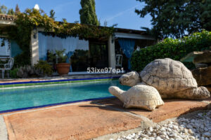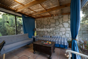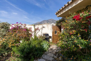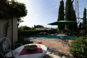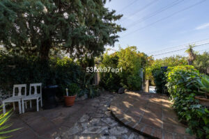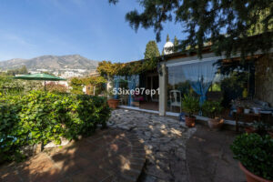 En la parte trasera de la casa hay un patio con sol de mañana. Sobre el garaje encontramos una terraza con vistas abiertas al mar y a toda Fuengirola. Alrededor de la piscina hay varios espacios donde se puede colocar mesitas, tumbonas y zonas de descanso.