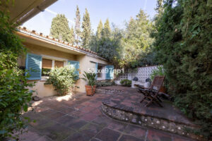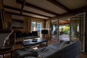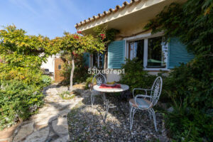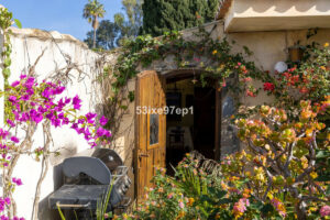La casa ofrece dos dormitorios, un despacho y dos baños, además de varios terrazas y patios para que pueda disfrutar del sol y la sombra durante todo el año. El salón y los dormitorios disponen de calefacción por suelo radiante y aire acondicionado hay en el dormitorio principal y el salón.