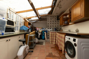 Desde la cocina se accede a otra habitación con espacio para una mesa larga, ideal para reuniones con grupos grandes. Más adelante, encontramos un amplio trastero donde también se encuentra la lavadora.