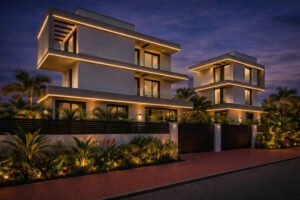 Distribuida en tres niveles cuidadosamente diseñados, la villa cuenta con 2 amplios dormitorios y 3 baños de lujo, con la posibilidad de crear un dormitorio adicional o un estudio de invitados independiente. Sus 287 m² de espacio interior destacan por un diseño luminoso y moderno, realzado por grandes ventanales de suelo a techo que conectan armoniosamente el interior con las zonas exteriores.