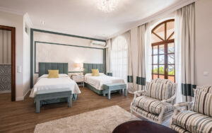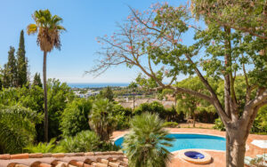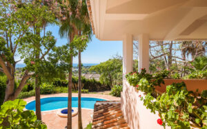 La villa principal se distribuye en tres niveles. La planta baja le da la bienvenida con amplias zonas de recepción que se abren a grandes terrazas cubiertas, un comedor formal, una espaciosa cocina con áreas de servicio y varios dormitorios en suite, todos dispuestos alrededor de hermosos patios que inundan los interiores de luz natural. La planta superior alberga suites adicionales, cada una con terrazas privadas que ofrecen vistas panorámicas al Mediterráneo, las montañas y los exuberantes jardines.