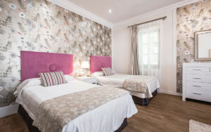 Una villa de invitados independiente proporciona alojamiento autónomo, con varios dormitorios, baños, una amplia terraza y garaje, ideal para recibir a invitados o familiares.