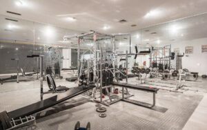 La planta inferior está dedicada al ocio y el bienestar, ofreciendo un gimnasio, sauna y una cómoda zona de estar, junto con alojamiento para invitados y dependencias para el personal, garantizando confort y privacidad tanto para los residentes como para los visitantes.