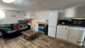 • Espacio Convertido: La planta baja ha sido inteligentemente transformada para incluir una habitación, un baño, una zona de cocina y una sala de estar, ofreciendo un espacio de vida autónomo.