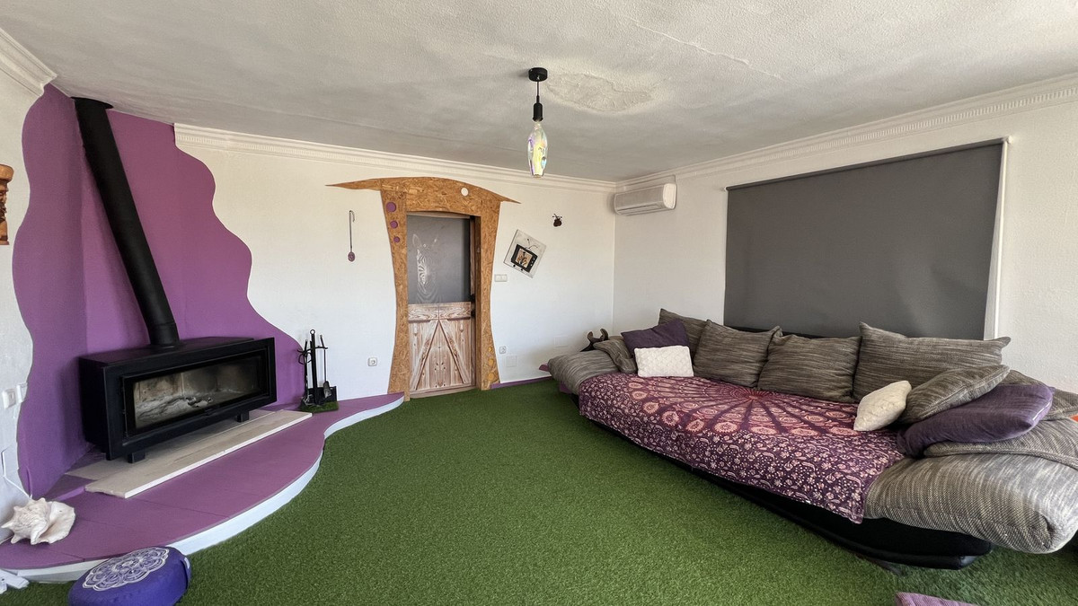 • Sala de Estar: La gran sala de estar es el lugar perfecto para relajarse, con una acogedora chimenea y grandes ventanales que ofrecen impresionantes vistas del Valle del Guadalhorce y hermosos atardeceres.