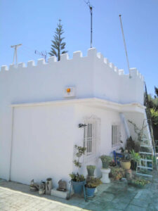 La villa dispone de una amplia terraza cubierta, ideal para disfrutar de comidas al aire libre o relajarse durante todo el año. Además, cuenta con una preciosa azotea de aproximadamente 18 m², con detalles decorativos en forma de almenas, perfecta para disfrutar del sol andaluz y las vistas panorámicas incluso en los meses de invierno.