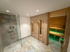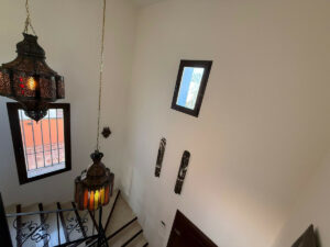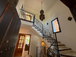 Esta encantadora villa se distribuye en tres plantas y cuenta con tres dormitorios y tres baños, uno en cada planta, lo que garantiza un alto grado de privacidad. Todos los baños son amplios y están equipados con duchas a ras de suelo.
