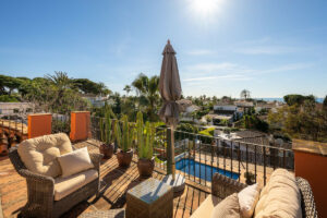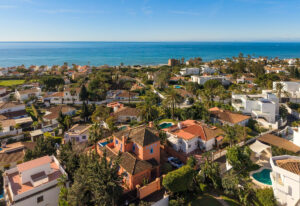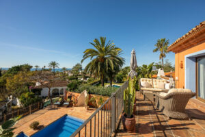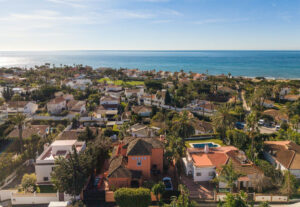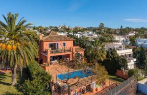 Villa de estilo andaluz muy bien cuidada, situada en la codiciada zona de Artola, con vistas al mar desde la planta baja y a pocos pasos de la playa.