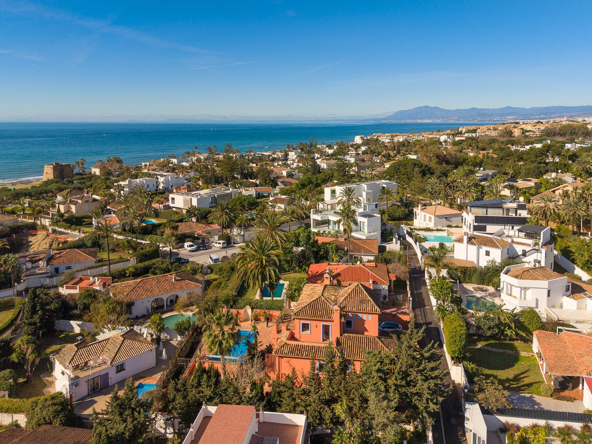 Villa de estilo andaluz muy bien cuidada, situada en la codiciada zona de Artola, con vistas al mar desde la planta baja y a pocos pasos de la playa.