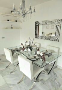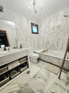 En impecable estado, esta villa cuenta con tres dormitorios (dos con baño en suite), tres baños (dos en suite), un recibidor acogedor, un salón-comedor de planta abierta y una cocina totalmente equipada a estrenar con horno, microondas, cafetera, nevera/congelador, lavavajillas integrados y encimeras de cuarzo. Suelos de mármol en toda la extensión, mientras que la amplia terraza exterior – recientemente renovada – incluye un jacuzzi para 5 personas para una relajación absoluta. El jardín ajardinado completamente vallado cuenta con riego automático, garantizando un mantenimiento mínimo.
