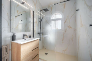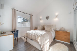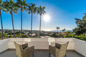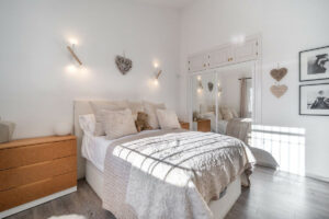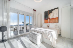 En la primera planta se encuentran el dormitorio principal y el baño con terraza y vistas aún mejores al mar Mediterráneo.