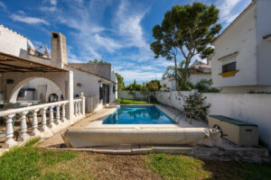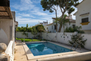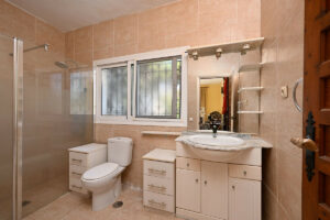 La villa ofrece una luminosa y amplia zona de estar, una cocina independiente y tres dormitorios de buen tamaño, cada uno con su propio baño en suite, lo que le da a la propiedad una excelente sensación de privacidad y comodidad. Aunque la villa necesita renovación, su amplio diseño y ubicación privilegiada ofrecen un enorme potencial para modernización y aumento de valor.