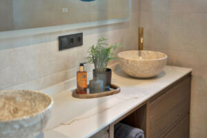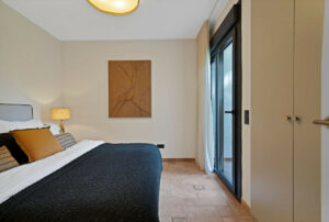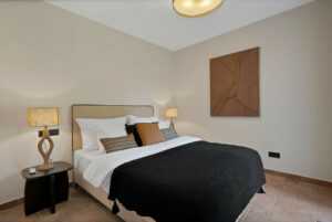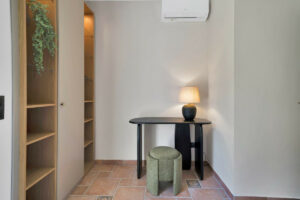 Junto al dormitorio hay un espacio adicional muy versátil que puede utilizarse como despacho, vestidor adicional, rincón de lectura o incluso como pequeño bar privado. Dispone de una pequeña nevera para tener bebidas frías siempre a mano, especialmente en los días más cálidos.