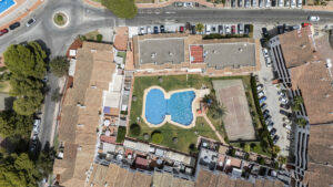 Otras características incluyen un garaje independiente con espacio de almacenamiento y un aparcamiento cubierto adicional para un segundo coche o para visitas. Dentro de la comunidad, los residentes disfrutan de jardines cuidados, piscina, restaurante y pista de tenis.
