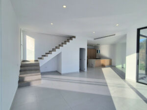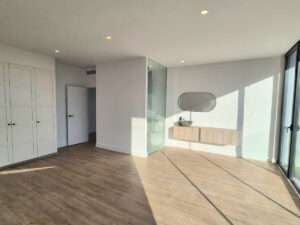 La villa tiene 3 plantas con techos altos en todas ellas. En el nivel del sótano hay un área versátil que puedes usar como desees, junto con estacionamiento para tus coches; aquí se pueden acomodar fácilmente 2 dormitorios y un baño. Cuenta con grandes ventanas que permiten la entrada de luz natural y acceso exterior por escaleras hasta la casa. En la primera planta, mediante escaleras, tienes un gran salon /comedor espaciosa abierta a una cocina totalmente equipada con electrodomésticos de primera calidad y con mucha luz natural que entra por las enormes puertas correderas que dan acceso a la terraza, la zona de la piscina y el jardín. En esta planta hay un aseo, techos altos y aire acondicionado frío y calor. En la segunda planta, hay 3 dormitorios dobles con dos baños en suite con duchas enormes; hay instalaciones preparadas para un tercero en el tercer dormitorio, aire acondicionado frío y calor, armarios empotrados y, nuevamente, grandes ventanas que proporcionan mucha luz natural y vistas increíbles.