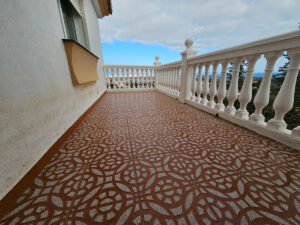 Porche de entrada y terrazas con vistas a la bahía de Málaga