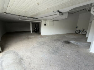 El garaje, de gran tamaño, tiene capacidad para hasta cuatro vehículos, con espacio adicional para almacenamiento, gimnasio o zona de trabajo.