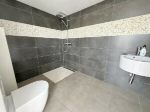 En este mismo nivel se dispone de un aseo de cortesía y de un baño completo con acceso desde el exterior, pensado para dar servicio directo a la zona de piscina.