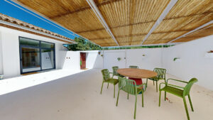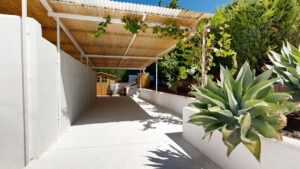En el exterior, dos portones eléctricos dan acceso a una amplia zona de aparcamiento con capacidad para más de cinco vehículos. La vivienda cuenta con un gran patio parcialmente cubierto, ideal para disfrutar del clima mediterráneo durante todo el año.