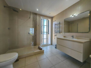 En la planta superior, una acogedora zona de salón abierta da al salón principal. A la izquierda, un dormitorio en suite con armarios empotrados y cuarto de baño privado se abre a una gran terraza orientada al sur con impresionantes vistas al mar. A la derecha, otro amplio dormitorio en suite disfruta de las mismas espectaculares vistas.
