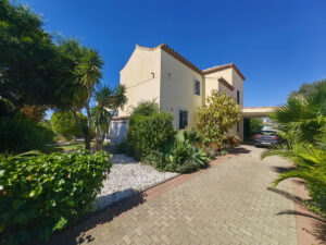 La villa se encuentra en una generosa parcela de casi 1000 m², rodeada de jardines que garantizan la privacidad, la tranquilidad y una verdadera sensación de evasión. Una gran piscina privada ocupa el centro del escenario, mientras que una puerta automática se abre al camino de entrada con aparcamiento tanto abierto como cubierto.