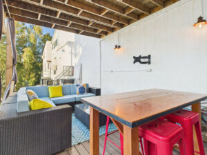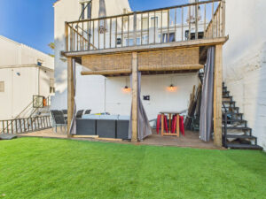Uno de sus puntos más destacados es la amplia zona exterior: un gran jardín privado, áreas sociales, zona de fuego y mucho espacio para crear rincones de relajación o entretenimiento adicionales.