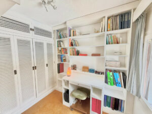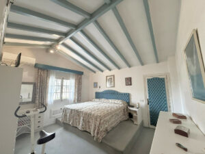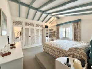 •Vestidor y armarios empotrados, revestidos de madera noble machihembrada y puertas venecianas.