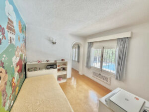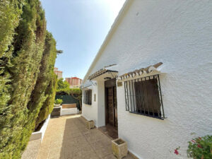 Descubra esta acogedora villa independiente situada en la pintoresca y tranquila urbanización Molino de la Condesa, en el corazón de Fuengirola. Ubicada en una calle muy apacible, sin tráfico ni estacionamiento permitido, ofrece máxima privacidad y tranquilidad en pleno centro urbano. Esta villa se vende amueblada.
