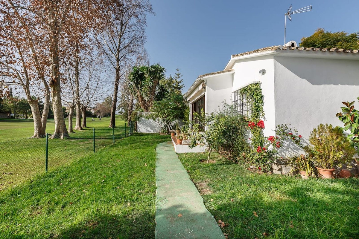 Encantadora villa en primera línea de golf en venta en Gaudalmina alta. Ideal rpoyecto de reforma o simplemente mudarse y disfrutar de las tranquilas vistas de Guadalmina Golf. Distribuida en una sola planta la propiedad tiene 3 dormitorios y 2 baños y un salón/comedor y cocina equipada