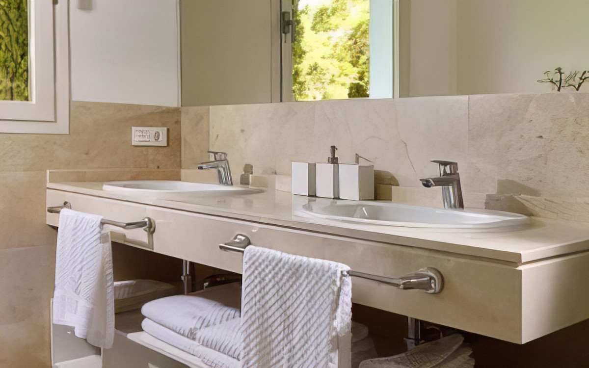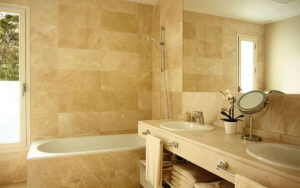 * La villa cuenta con hermosos suelos de mármol de color crema y calefacción por suelo radiante. Todas las habitaciones disponen de aire acondicionado frío/calor.