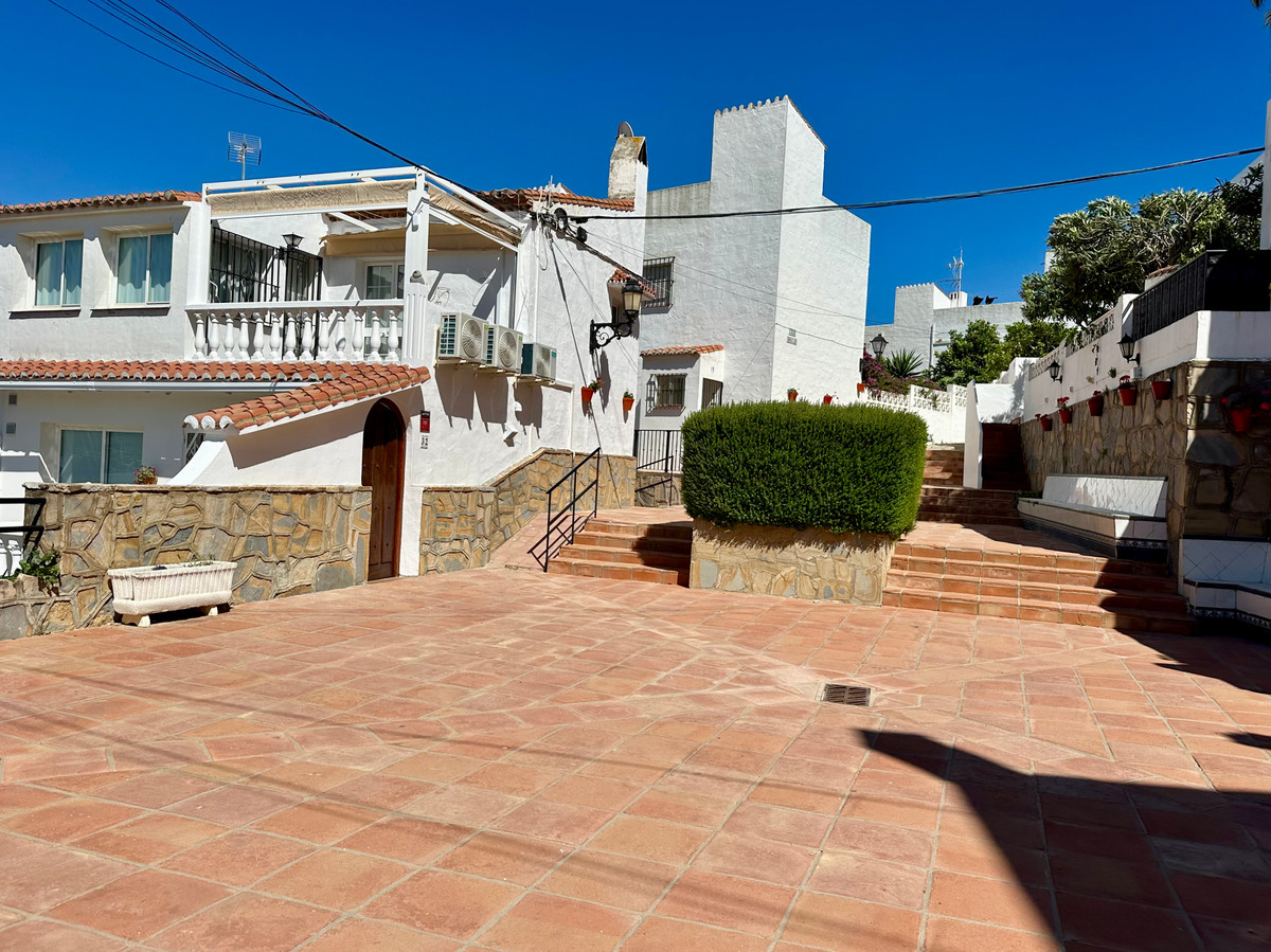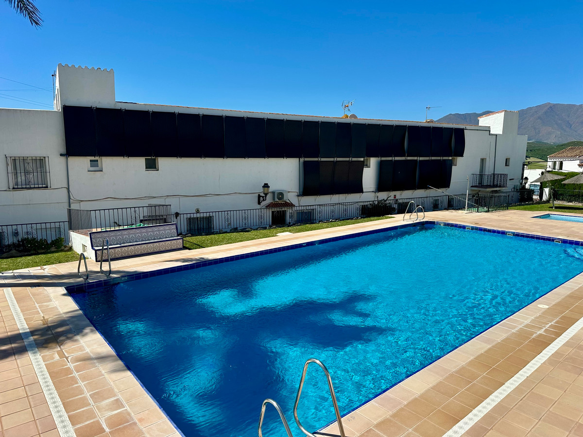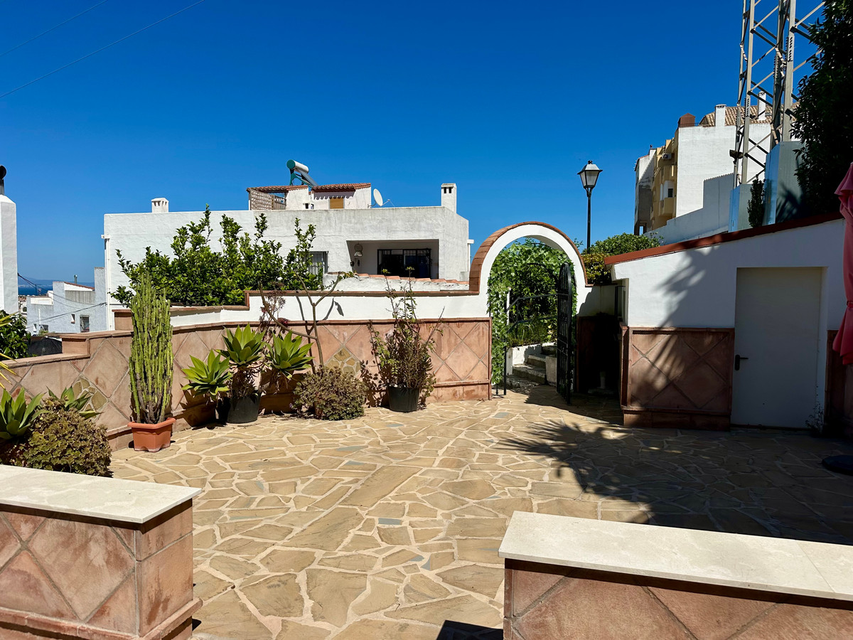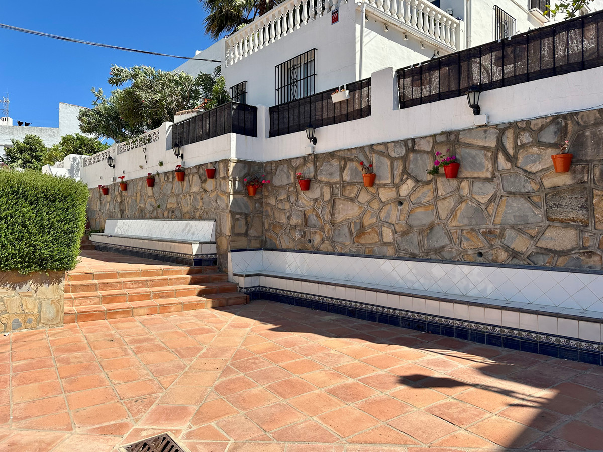 Maravilloso chalet independiente en el corazón de ManilvaEsta acogedora vivienda unifamiliar de tres plantas te invita a disfrutar del encanto andaluz en una urbanización tranquila con piscina, a un paso del centro de Manilva.Al llegar, te recibe un soleado patio orientado al sur de unos 60 m², con elegantes columnas de estilo tradicional, terraza cubierta y un trastero perfectamente integrado.En el interior, un pasillo conduce a un baño con ducha, y más adelante, se abre un cálido salón con chimenea y cocina americana. El comedor independiente conecta con una terraza con barbacoa, ideal para compartir momentos al aire libre.Un nivel más bajo alberga otra terraza de unos 40 m² con una habitación independiente, ducha exterior y lavadero.Desde el salón, una bonita escalera de caracol lleva a la primera planta, donde se encuentran dos dormitorios con armarios empotrados y un baño moderno con ducha.A continuación, en la última planta, una encantadora azotea de unos 30 m² ofrece vistas abiertas a la montaña, al campo y al mar… un rincón para respirar y desconectar.Tienes a su disposición el documento informativo abreviado. Gastos: Impuestos (ITP o IVA +AJD) + Gastos notariales y registrales.NGS