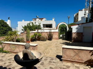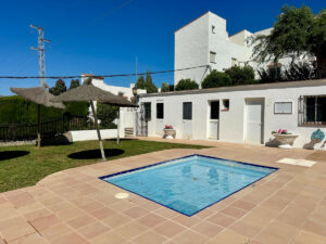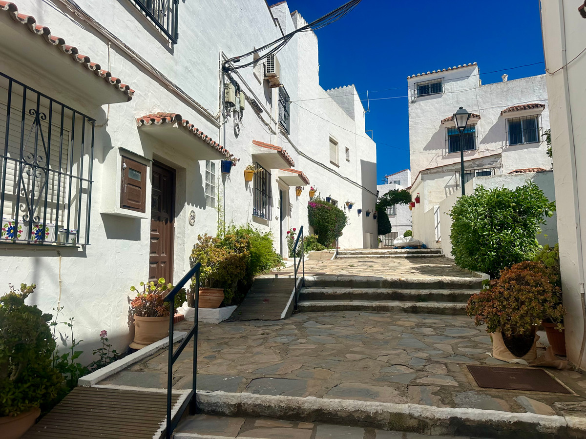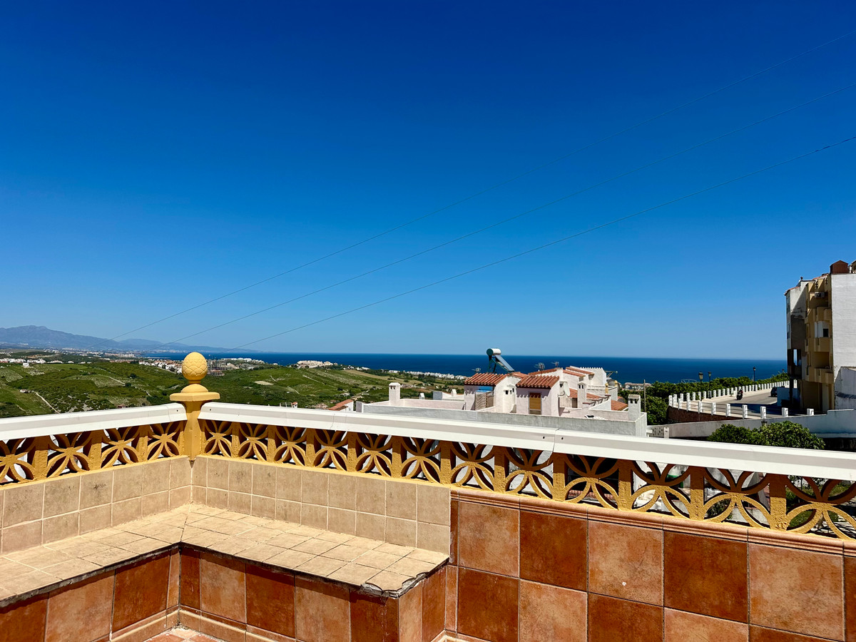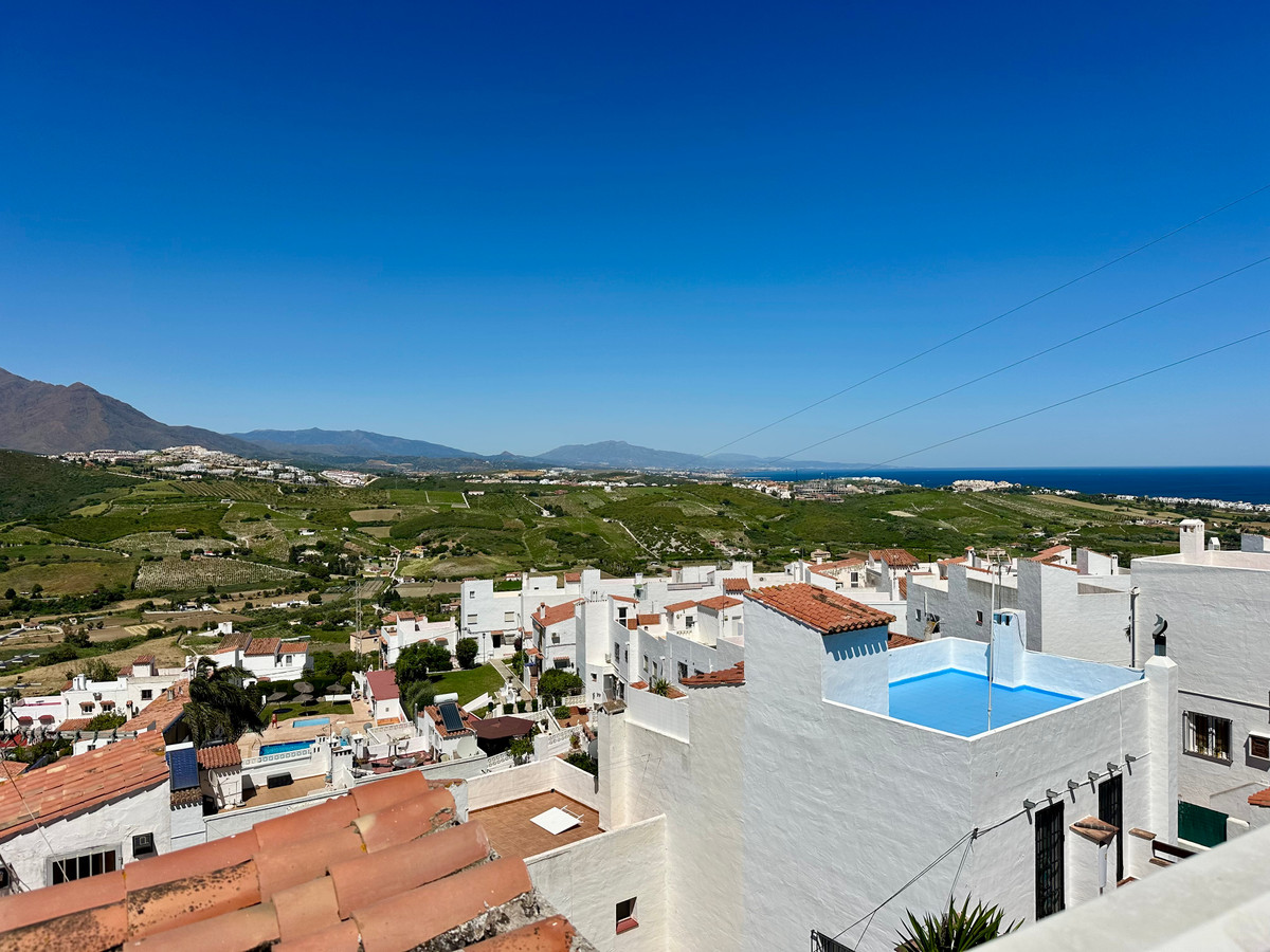 Maravilloso chalet independiente en el corazón de ManilvaEsta acogedora vivienda unifamiliar de tres plantas te invita a disfrutar del encanto andaluz en una urbanización tranquila con piscina, a un paso del centro de Manilva.Al llegar, te recibe un soleado patio orientado al sur de unos 60 m², con elegantes columnas de estilo tradicional, terraza cubierta y un trastero perfectamente integrado.En el interior, un pasillo conduce a un baño con ducha, y más adelante, se abre un cálido salón con chimenea y cocina americana. El comedor independiente conecta con una terraza con barbacoa, ideal para compartir momentos al aire libre.Un nivel más bajo alberga otra terraza de unos 40 m² con una habitación independiente, ducha exterior y lavadero.Desde el salón, una bonita escalera de caracol lleva a la primera planta, donde se encuentran dos dormitorios con armarios empotrados y un baño moderno con ducha.A continuación, en la última planta, una encantadora azotea de unos 30 m² ofrece vistas abiertas a la montaña, al campo y al mar… un rincón para respirar y desconectar.Tienes a su disposición el documento informativo abreviado. Gastos: Impuestos (ITP o IVA +AJD) + Gastos notariales y registrales.NGS