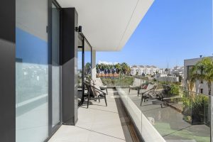 Ambos dormitorios tienen acceso a un amplio balcón envolvente con impresionantes vistas al mar.