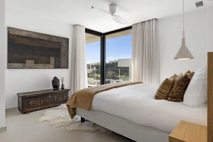 La suite principal se encuentra en la parte delantera de la casa y ofrece impresionantes vistas al mar.
